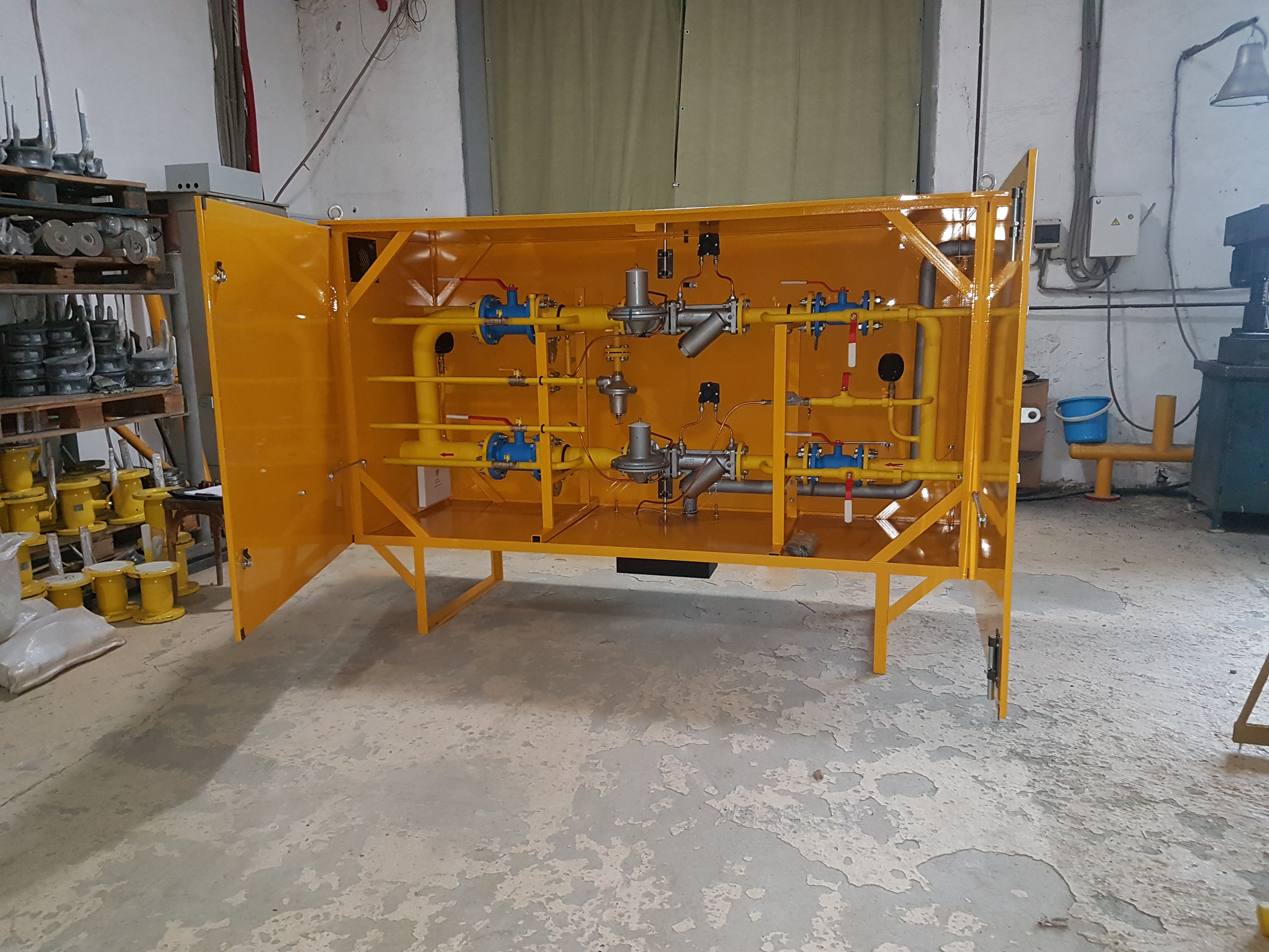 Грпш оснащен трубопроводной арматурой марки "LD"; заглушками поворотными "ЗП"; регуляторами давления газа серии РДНК "ЭПО Сигнал"; газовый обогреватель "ОГШН".